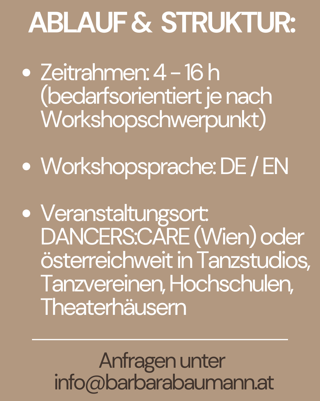 Ort: DANCERS:CARE, 1060 Wien & Zoom